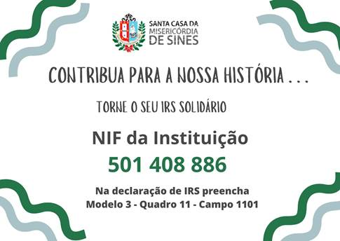 Até 31 de março pode indicar a entidade à qual pretende consignar 0.5% do IRS de 2023 de forma automática. Ao entrar no portal das Finanças têm uma ligação direta para a área da consignação fiscal. Pode consignar 0.5% do seu IRS à Misericórdia de Sines, NIF 501408886. [...]
