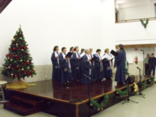 Destinada ao convívio entre todas as valências, contou com a participação dos utentes que as integram, num vasto e diversificado programa de animação. A apresentação esteve a cargo dos jovens César Silva (Lar Âncora) e Edna Figueiredo (Porto d´Abrigo), que foram puxando pelo público e animando a audiência com alegria e boa disposição. A festa iniciou com a apresentação do Grupo Coral da Santa Casa, composto por funcionárias, voluntárias e amigas da instituição, que numa brilhante actuação interpretaram temas de Natal e Música Popular Portuguesa. O Lar Prats apresentou vários quadros, resultado do trabalho que os técnicos têm vindo a desenvolver com os idosos ao longo do ano. Na área da motricidade humana, a terapeuta Marina, que tem vindo a desenvolver um trabalho ao nível do equilíbrio com utentes em cadeira de rodas, apresentou uma pequena demonstração coreográfica com as utentes Dª Balbina e Dª Leonilde Luís. Ainda nesta área, foi apresentada a coreografia “Dia de Chuva” com a participação do Grupo de Risco do Lar Prats: Fernando, Idalina, António Rodrigues, Florival, Isilda e João Afonso. Alguns destes utentes, aos quais se juntou o Sr. Marreiros, leram um poema alusivo ao Natal.