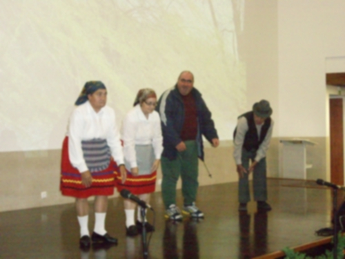 O programa terminou com uma muito divertida peça de teatro, da autoria e Lídia Mateus, sobre a chegada de uma família de alentejanos novos-ricos, de regresso às origens, no seu Alentejo profundo, já contaminados com os tiques dos subúrbios. Mas o seu regresso ao campo vai ser escrutinado ao milímetro pela regateirice impiedosa e mordaz de duas vizinhas, que arrasam as pretensas modernices da capital. Participaram na peça: Fatinha, Vera, Gracinda, Lídia, Rafaela, Sofia, Inês e Miguel. A festa convívio terminou com lanche de confraternização entre utentes e convidados.