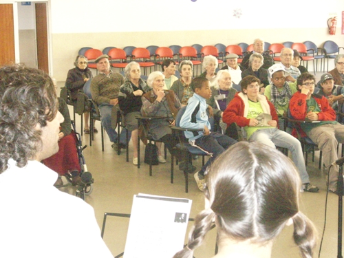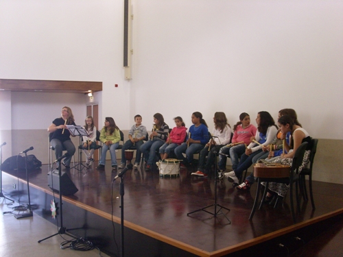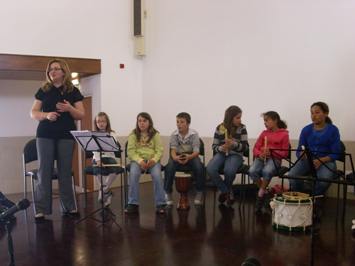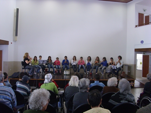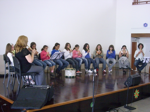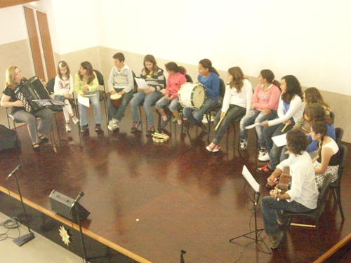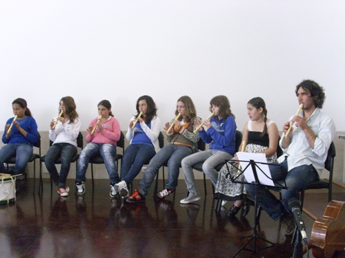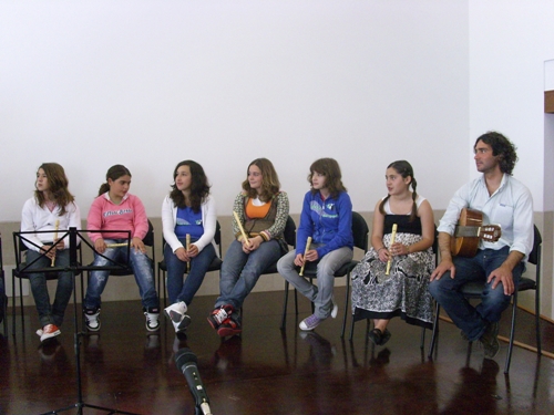 Apesar de muito jovens, os alunos do Clube de Música da Escola Vasco da Gama de Sines fizeram um brilhante concerto que animou e comoveu os utentes das valências da Santa Casa da Misericórdia. Ouvir estes pequenos grandes músicos ajuda-nos a continuar a olhar para o futuro com esperança e apaziguar as incansáveis “vozes da lamúria” sobre as juventudes perdidas. Há sempre alguém que não se acomoda, que vive com intensidade o seu tempo, que sabe que a cada momento está a fazer o futuro. Parabéns a todos. Professora Carla e professor Nuno continuem. O Projecto de Dinamização Artístico-Musical da Escola Básica 2, 3 Vasco da Gama - Sines teve o seu início no ano lectivo 2007/2008. Os professores responsáveis por este projecto são Carla Nunes e Nuno Gonçalves, ambos docentes de Educação Musical na escola. Entre os objectivos deste projecto, contam-se a constituição de um agrupamento musical formado por alunos com apetências musicais, para trabalhar em articulação com actividades realizadas por outras disciplinas e também com a comunidade. Entre actuações com a Fanfarra dos Bombeiros, Desfiles de Carnaval, a organização de uma Semana do Fado e dezenas de actuações em comemorações de datas festivas, dentro da escola, o Clube conta com um vasto currículo de apresentações musicais, actuando sempre que solicitado com a devida antecedência. Os 15 alunos que frequentam o projecto cantam, tocam flauta, cavaquinho, viola e todos os instrumentos da Orquestra Orff, tais como xilofones e pequena percussão. Nas actuações na Santa Casa da Misericórdia, os alunos executam flauta e instrumentos de pequena percussão. O professor Nuno Gonçalves toca na sua viola e a professora Carla Nunes, acordeão, que são os instrumentos da sua especialidade. Repertório interpretado na primeira actuação: